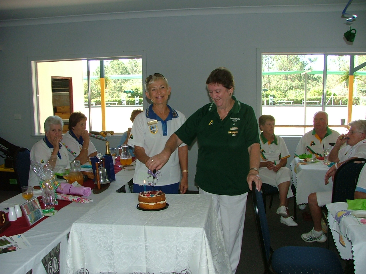 Vice President Lorna and Caboolture District Ladies President, Cathy Hartshorn cutting the Birthday Cake