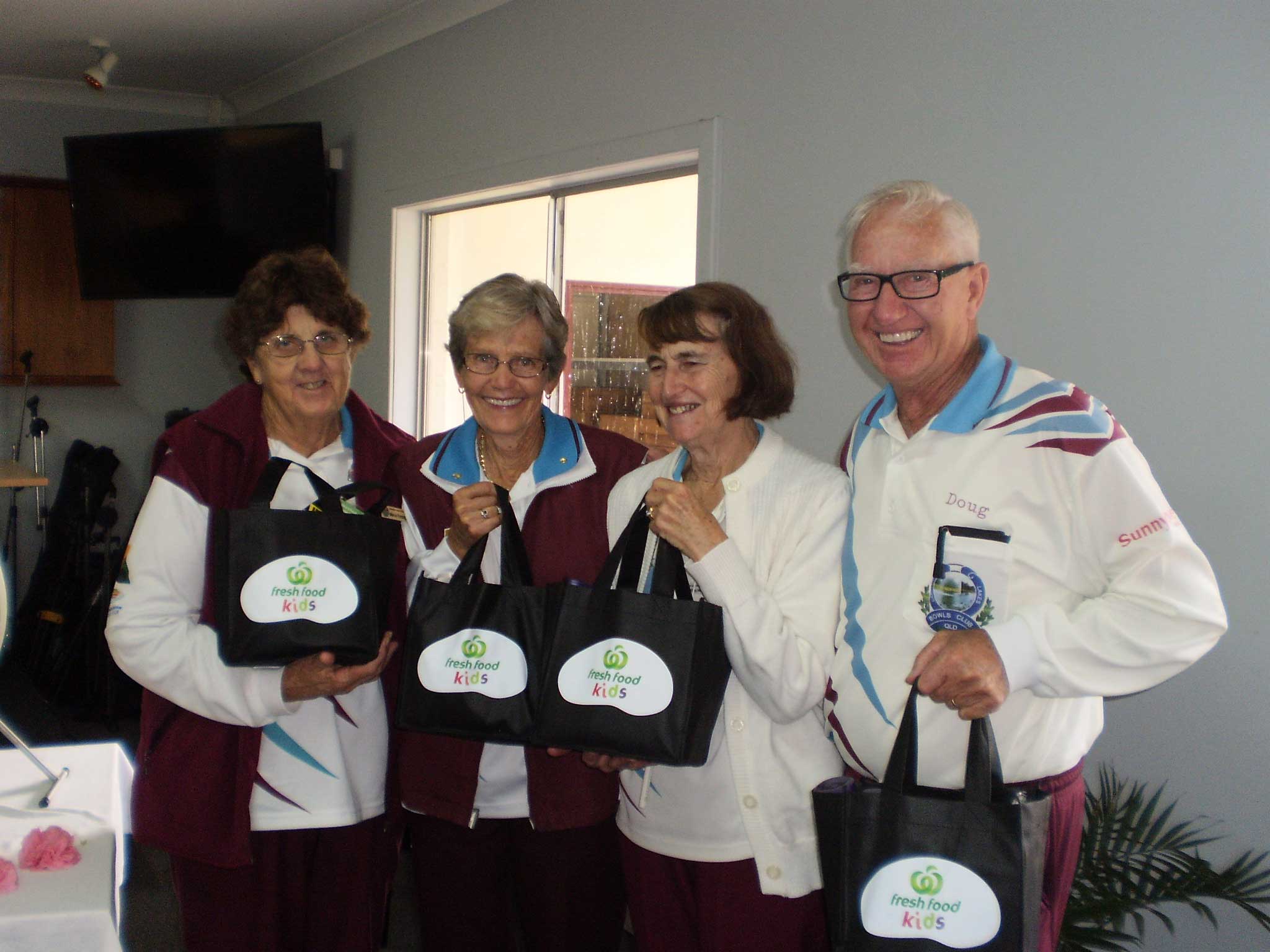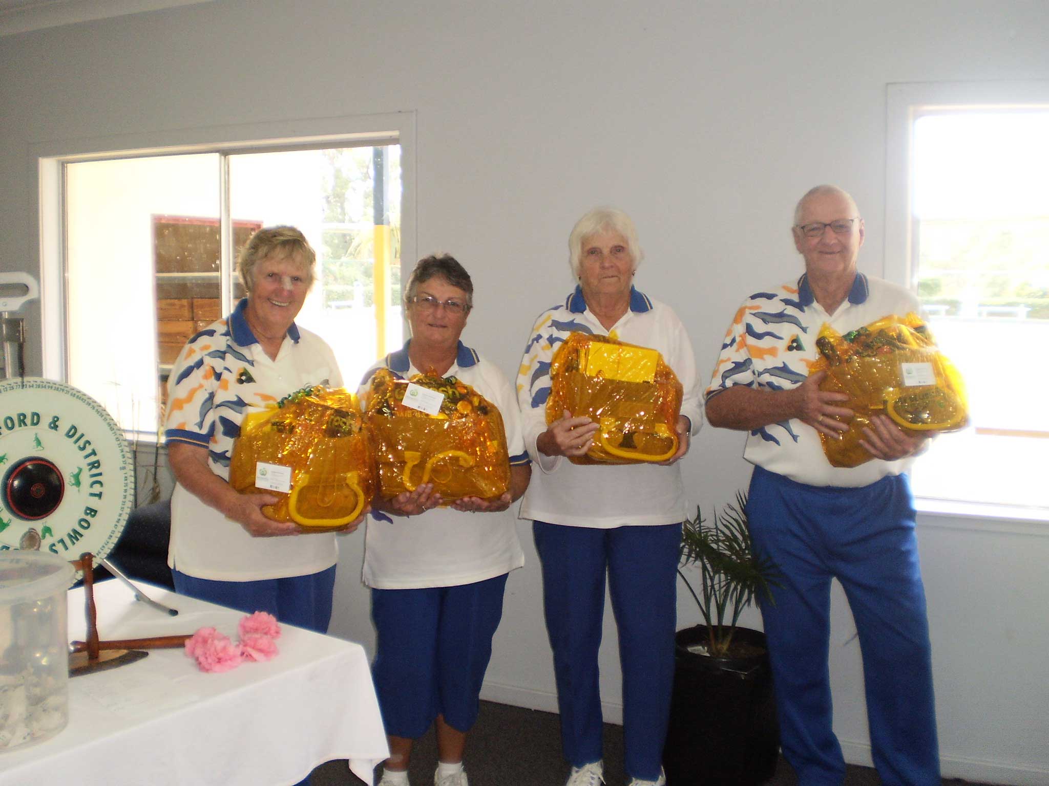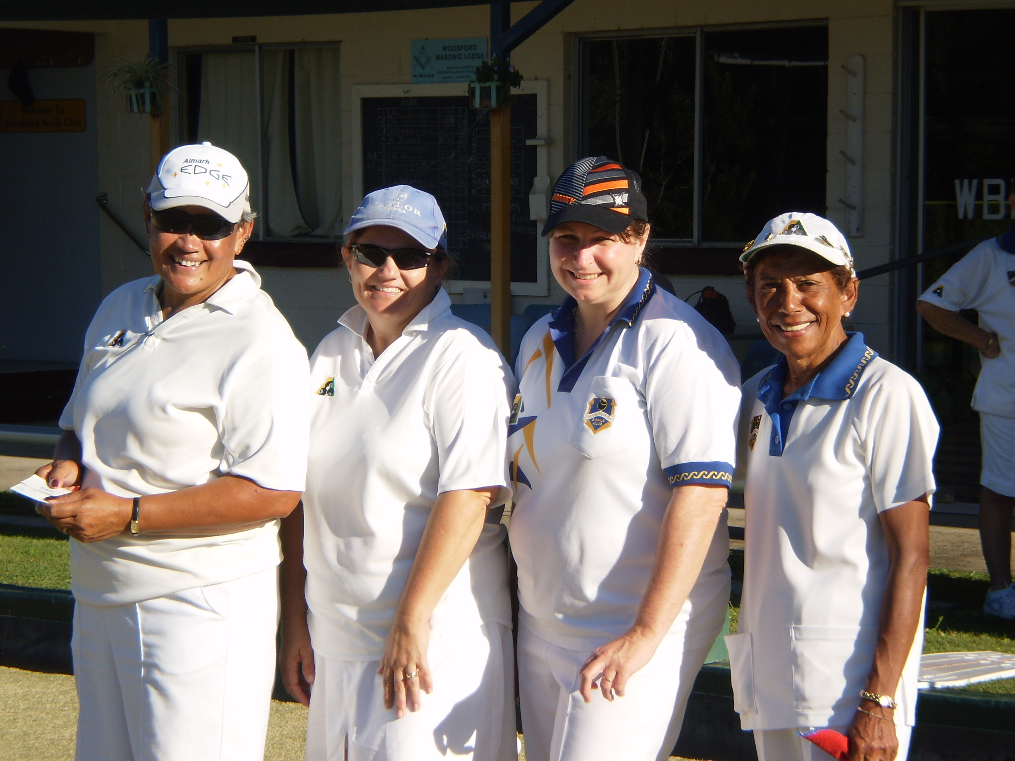 Woodford Ladies enjoyed the company of 11 teams from the District and 1 from Toogoolawah at our 4’s Day. Although it rained almost continually from the start and the bowling was cut short, the day was a great success and Marg’s pumpkin soup for lunch went down a treat. The trophies, very kindly donated by Woodford Woolworths, were won by Bribie Island (winners) and Caboolture Lakes(runners-up). Thanks go to Ella and Marg for their help in setting up the tables and preparing the lunch and to all those who donated their time and goods in making the day a great success.